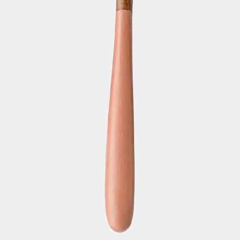 フォークの持ち手はころんとした厚みがあり、程よい太さ。柔らかな曲線は肌触りもよく、子どもの小さな手にもよく馴染みます。先は細く仕上げられていて、食べ物にしっかりと刺すことができます。長さは15.5cm。幼児の手であれば食事時にも十分使えるサイズ感です。
