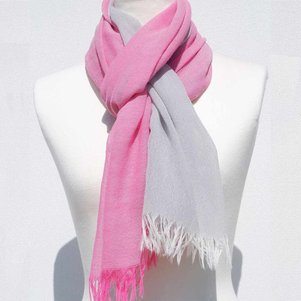 【ストール】KASANE 雪ノ下 (シルバー×グレイッシュピンク) | 郡内織物 | 富士桜工房