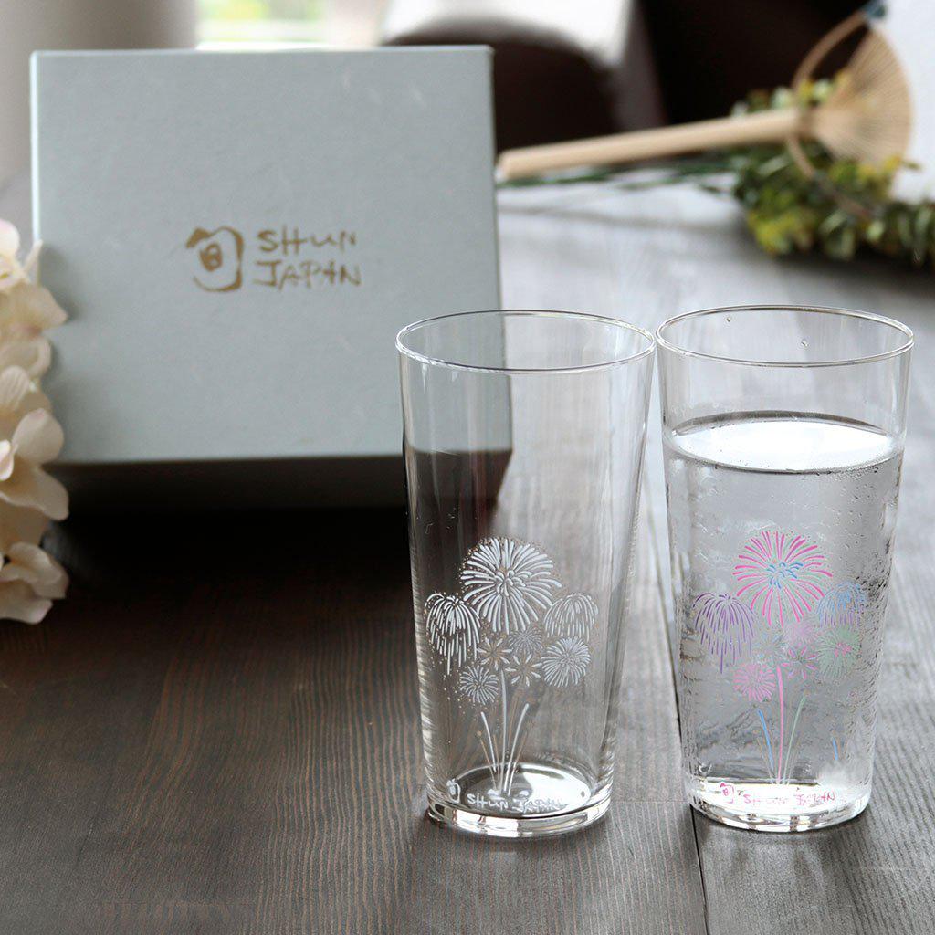 桜・花火・紅葉・雪景色と、日本の四季を感じられる美しい柄が魅力の、人気の「冷感」シリーズのタンブラーグラス2点セットです。高さ約13cmのタンブラーは容量360mmとたっぷり入るので、お水やジュース、アルコールなど、さまざまな飲み物を楽しめます。2点セットなので、カップルやご夫婦への贈り物にもおすすめです。