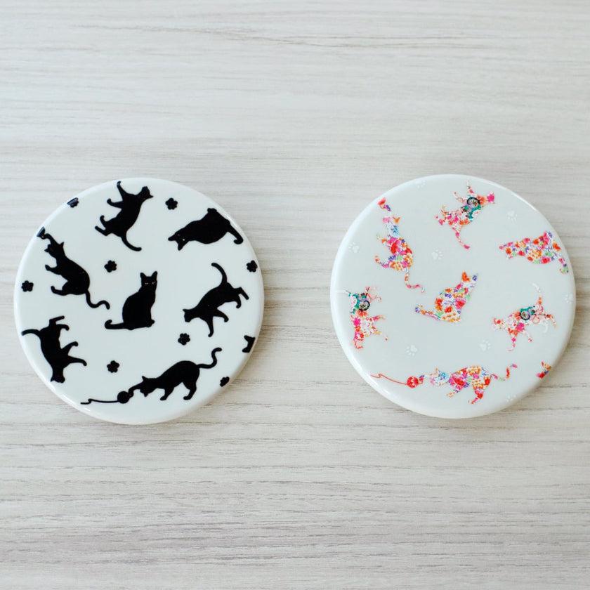 45度以上の飲み物を入れると、猫の黒いシルエットが鮮やかな和柄に変身します。