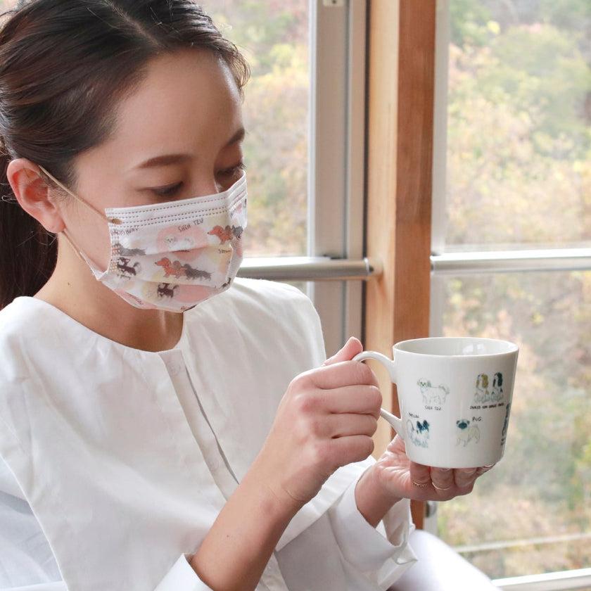 日本一の生産量を誇る美濃焼と台湾発おしゃれなマスクブランドJIUJIU、大人気ペットイラストレーターsakioのコラボマグカップです。