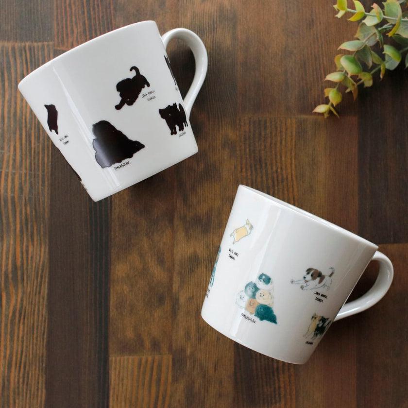 1300年以上の歴史を持つ"美濃焼"の、丈夫で普段使いしやすいマグカップです。45度以上の温飲料を注ぐと、犬たちのシルエットが色付きます。マットグレーは犬の親子が和柄に、白のマグカップはたくさんの犬たちのポップなイラストが浮かび上がり、いつものティータイムがより特別な時間に!プレゼントにもご自宅用にもおすすめです。