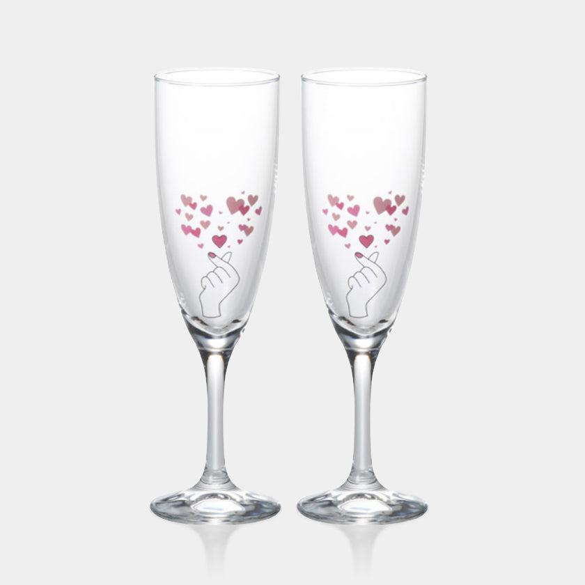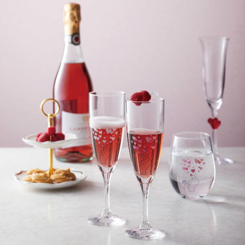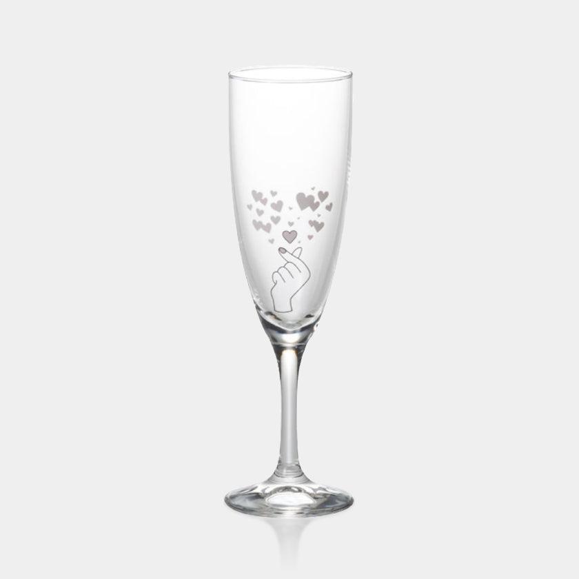 約17度以下の飲み物を入れると、「きゅんですポーズ」から美しいハートが飛び出すシャンパングラスです。