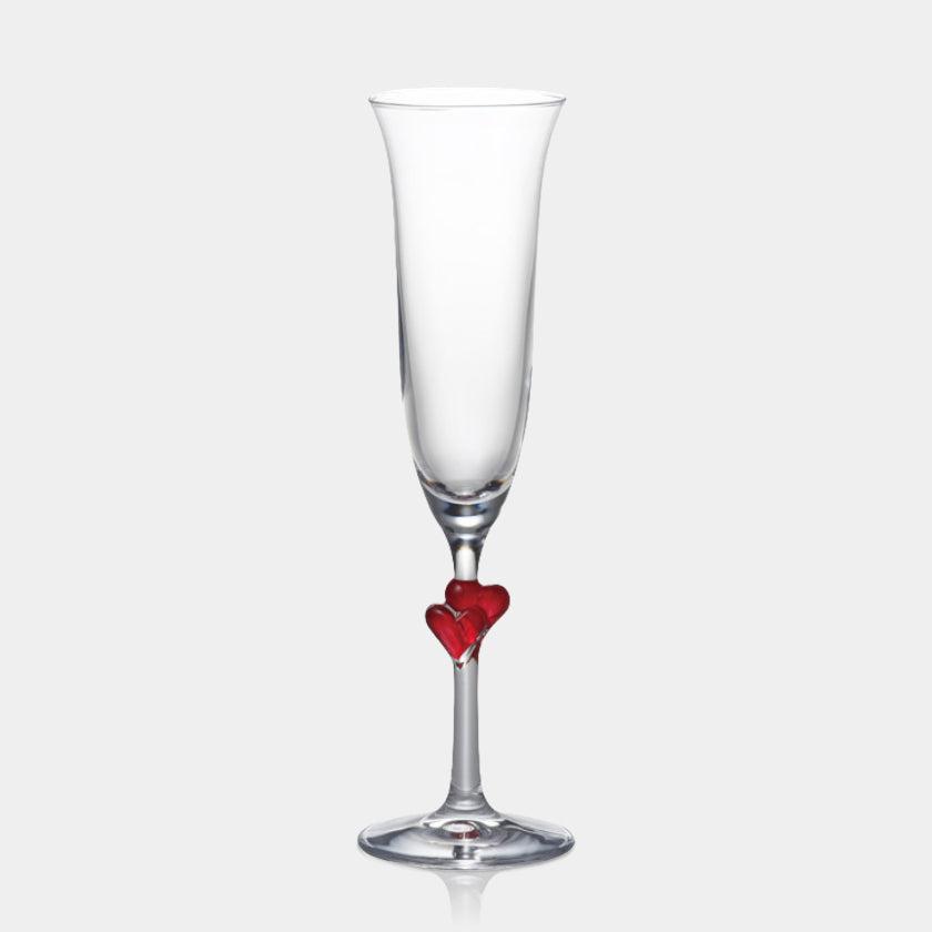 ハートのモチーフが付いたシャンパングラスは、恋人や夫婦と過ごす大切な時間にぴったりです。