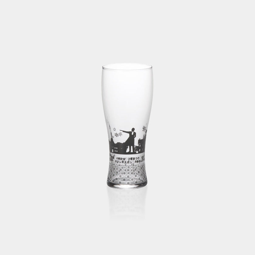 北海道の名所を描いた背の高いトラベリンググラスです。