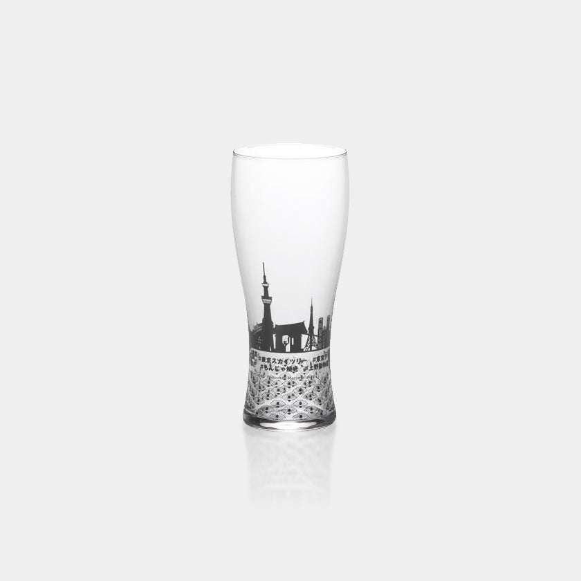 東京の名所を描いた背の高いトラベリンググラスです。