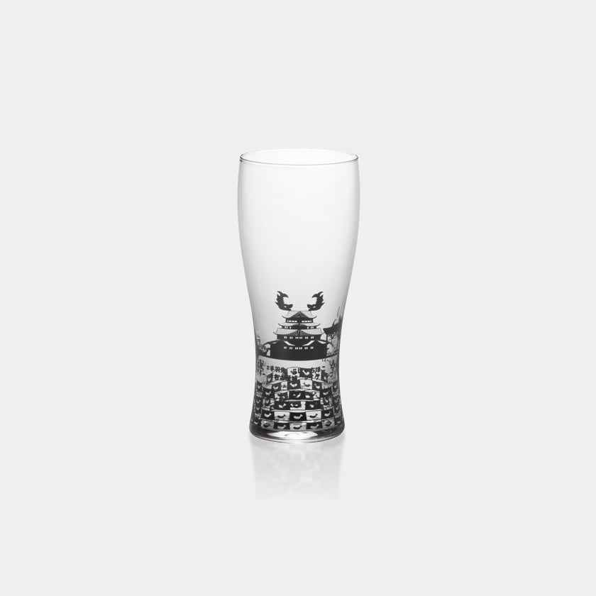 名古屋の名所を描いた背の高いトラベリンググラスです。