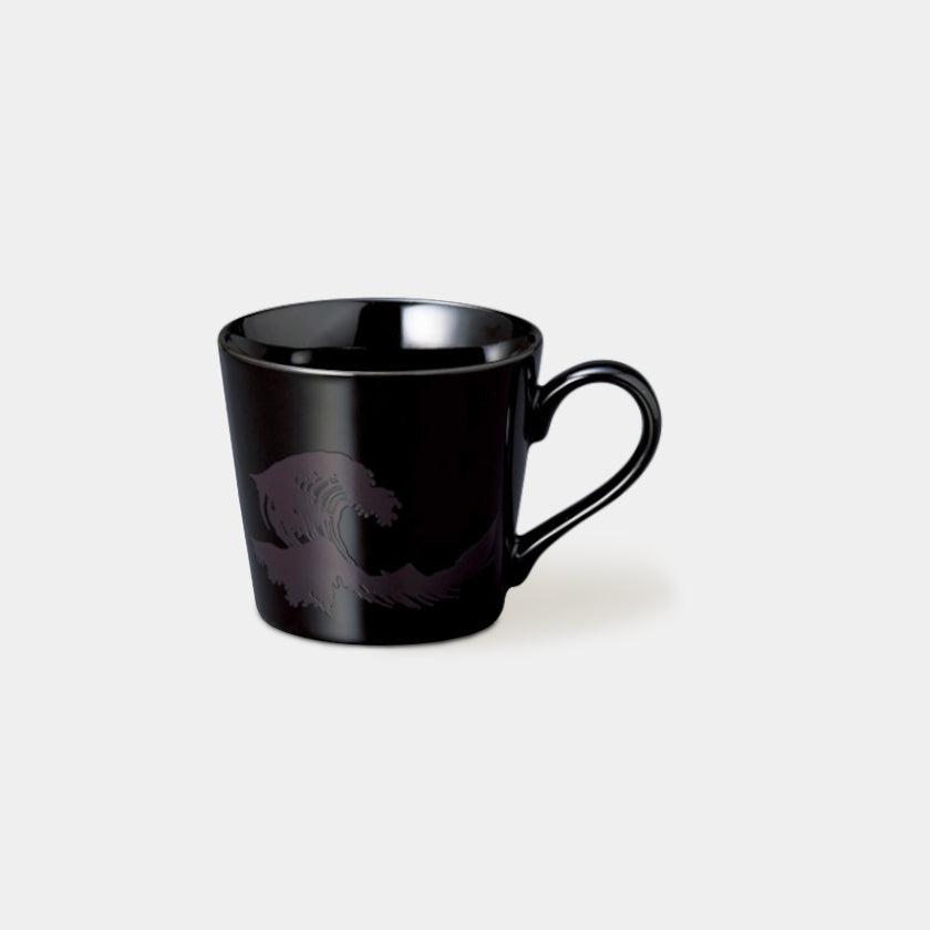 艶のある黒のカップにくっきりと絵柄が浮かぶマグカップは、コーヒータイムを大人な雰囲気に仕上げてくれること間違いなし。