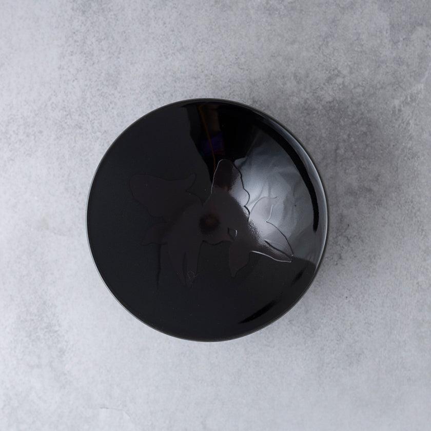 約45度以上の飲み物を入れると、黒い盃に鮮やかな金魚が現れる温感シリーズの平盃です。