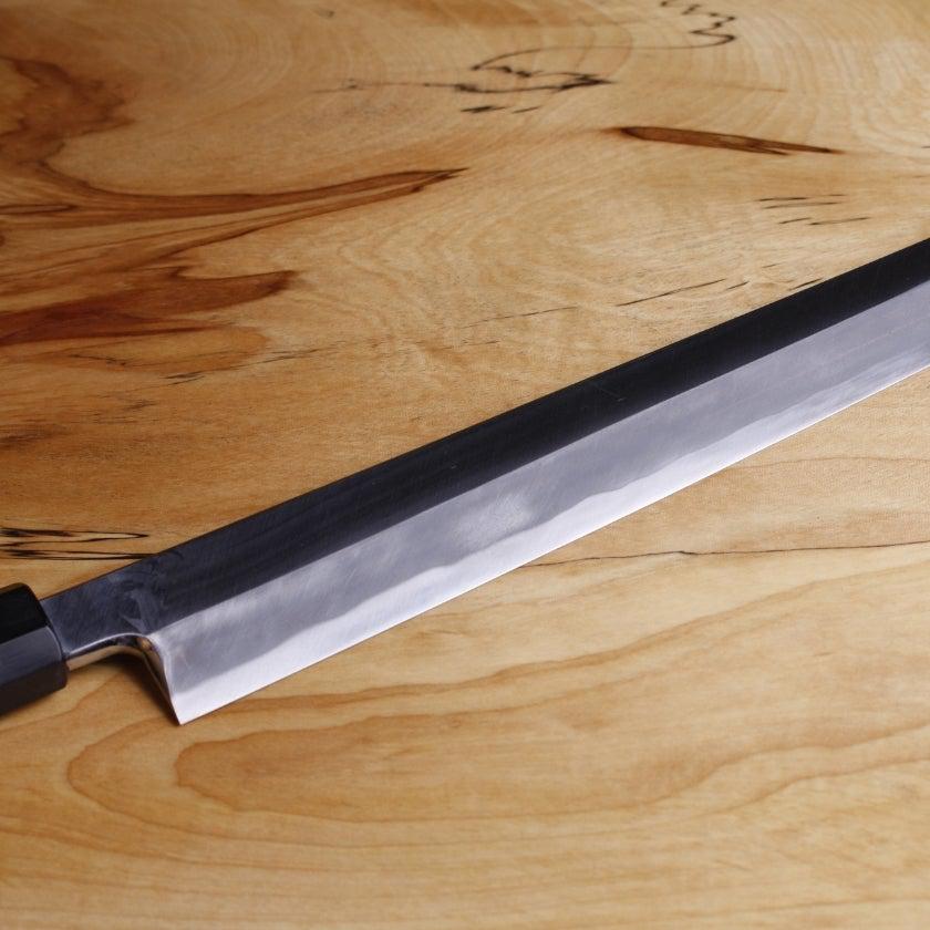 本刃付けはご希望により可能ですが、刃を薄くするため切れ味は良くなりますが刃こぼれしやすく、また模様が消えたり、砥石の跡が残ったりする場合がありますのでご注意ください。