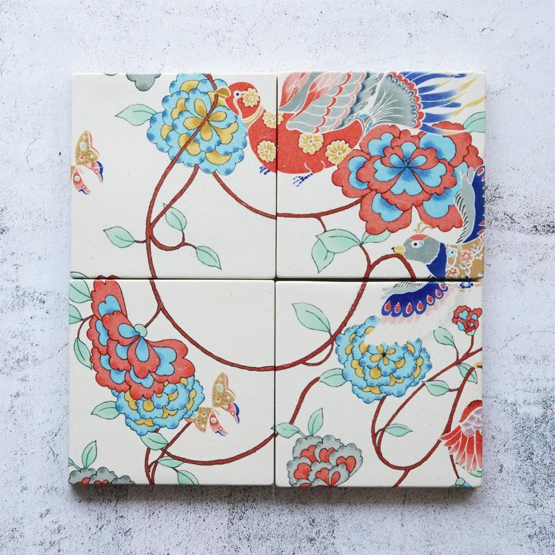 縁起の良い吉祥模様をアレンジして制作した着物ケモノデのデザインを、タイルにリプロダクトしました。