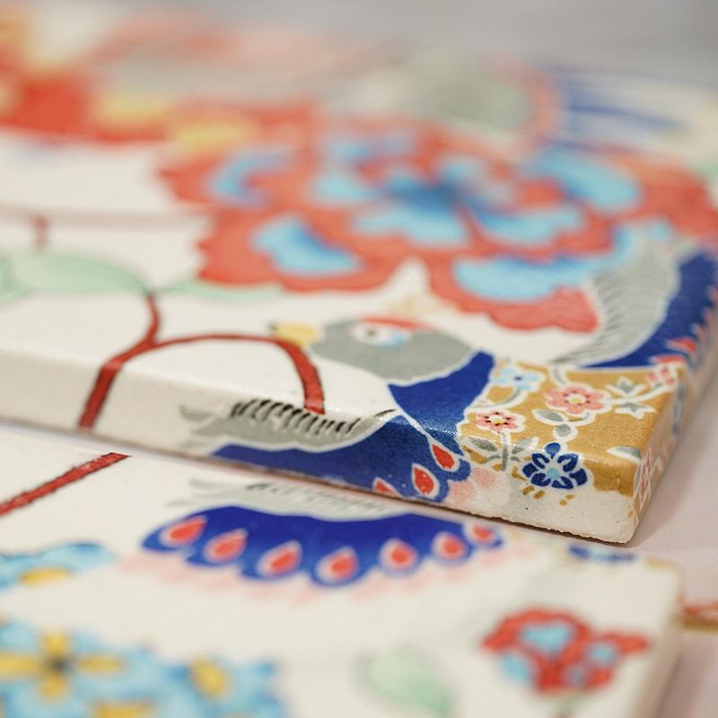 またタイルの側面にも柄を入れておりますので、食器として使用した際、食卓が非常に華やかです。
