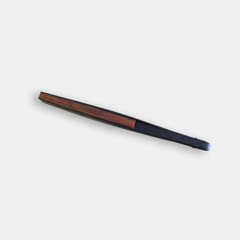 いい扇子の証と言われるように、扇子を閉じたときに上部の「天」がキュッとしまった形をしていて、横から見たときにも扇面の紙がまったくはみ出ていません。開け閉めもスムーズで、パチッとしまる感触もとても心地よいです。