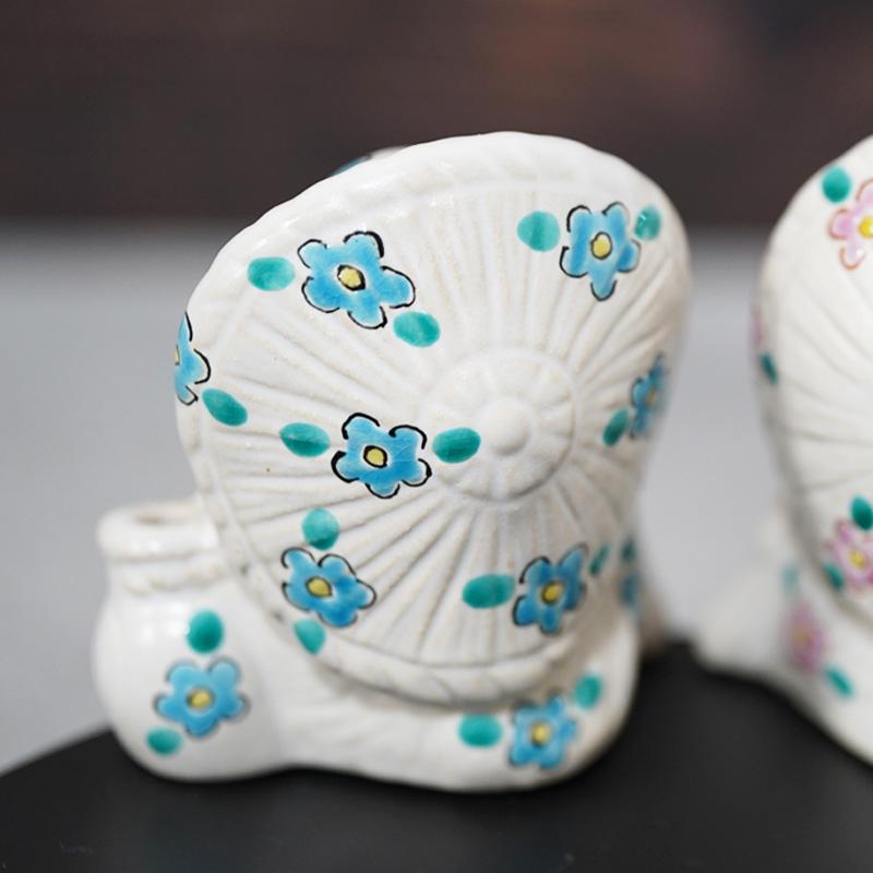 九谷焼とのコラボから生まれた、花柄がかわいらしいたぬきです。