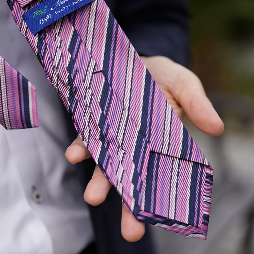 【西陣織】Nekado プリーツタイ マルチストライプ ピンク
