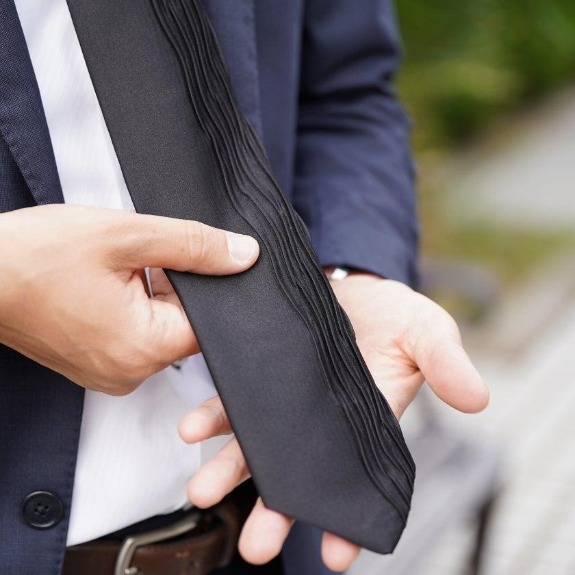 京都の伝統工芸「西陣織」とプリーツ技術を融合し、とても締めやすく皺になりにくい独自技術のネクタイが誕生しました。