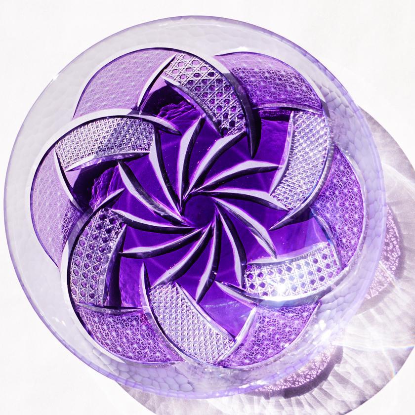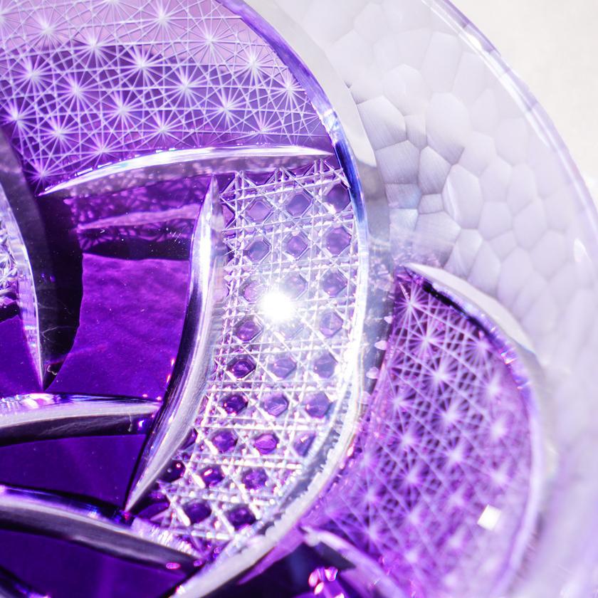 麻の葉はオーソドックスなスタイルながら、類を見ない細かさでカットし、さらにそれを手磨きすることで、これまでにない煌めきが見てとれるはずです。