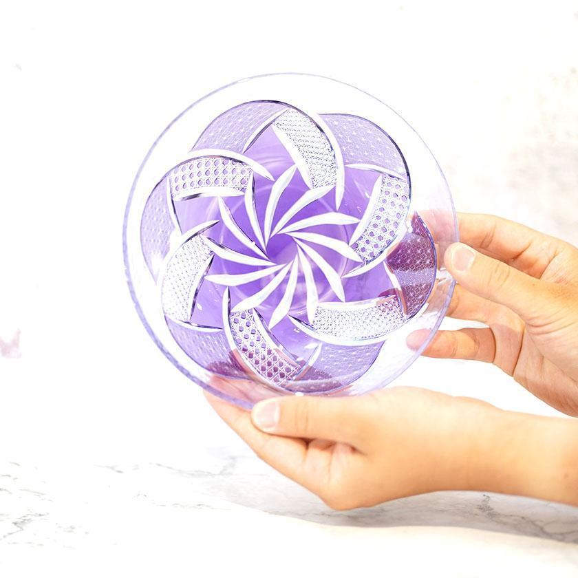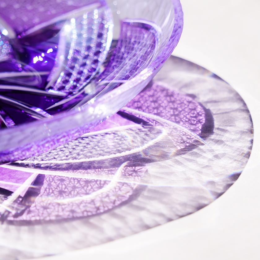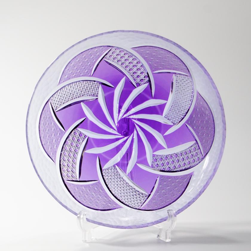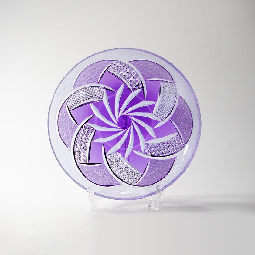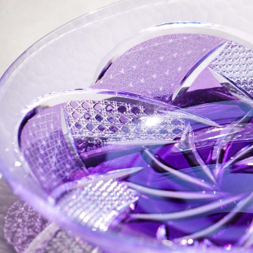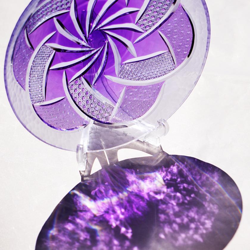 紫色が色鮮やかでそれだけでも美しいお皿に豪華なカットを施しました。