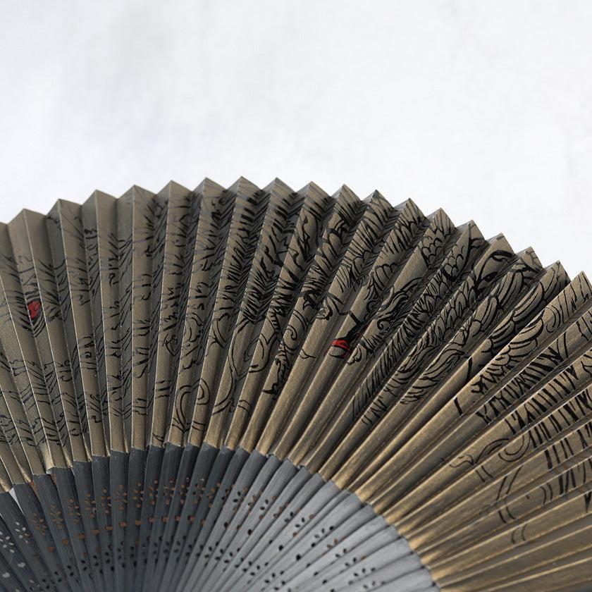 繊細なタッチで羽が流れるように描かれており、どことなく神秘的の雰囲気の漂う漆絵扇子です。