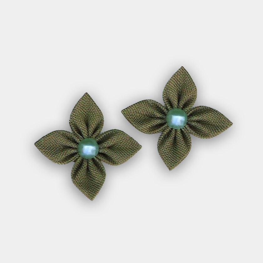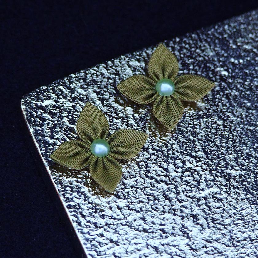 伝統工芸「つまみ細工」を、独自の道具や技法で発展させた布花のピアスです。