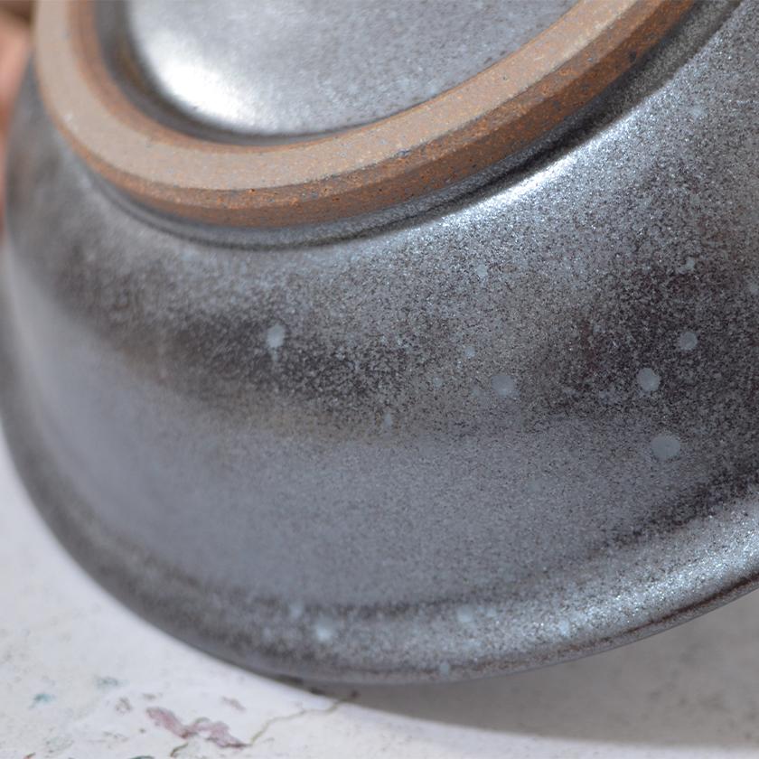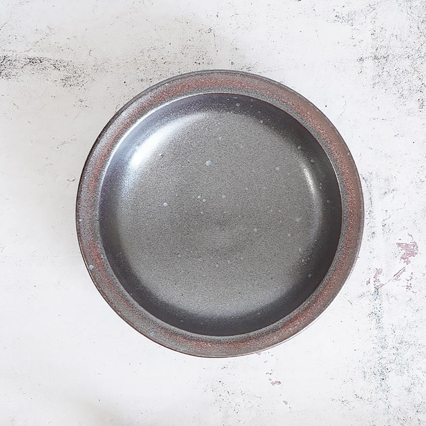 熟練の職人がロクロ成形で丁寧に作り上げた、燻されたよぅな鉄色が美しいたっぷりサイズの盛鉢です。