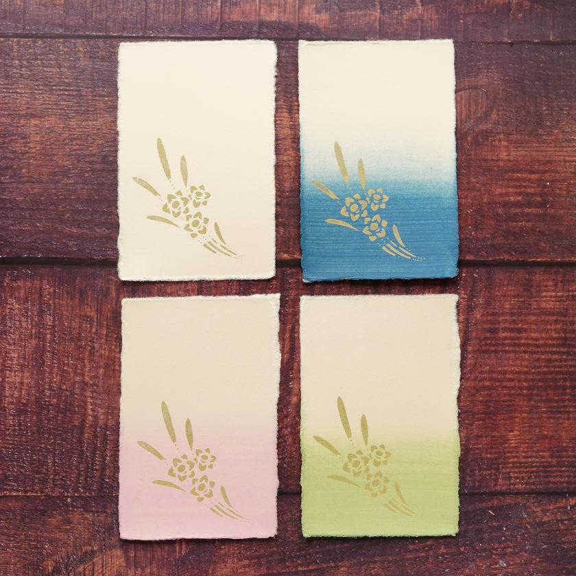 こちらは襖の技法と柄を取り入れた、色違い絵はがき4枚セットです。