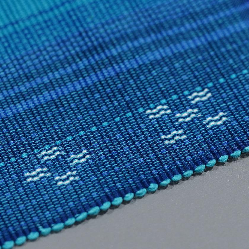 八重山の島々で代々に渡り受け継がれてきたみんさー織。このコースターは、天気や時間によって映ろう海の美しい色を表現して織られています。幸せを願う四角形の織り模様が特徴です。どんな素材のカップにも合わせやすいので、お手持ちのテーブルウェアとのコーディネートを楽しむことができますよ。