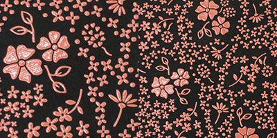 黒い滑らかな鹿革にピンクの漆で文様を施した高級感あふれる伝統工芸品です。