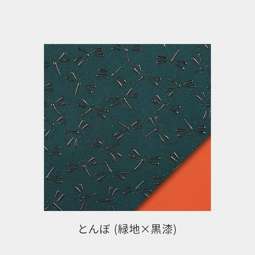 「HISOKA」は表側の艶やかな黒漆の模様と、内側を開くと現れる華やかなオレンジ色のコントラストを楽しめるデザインが特徴です。