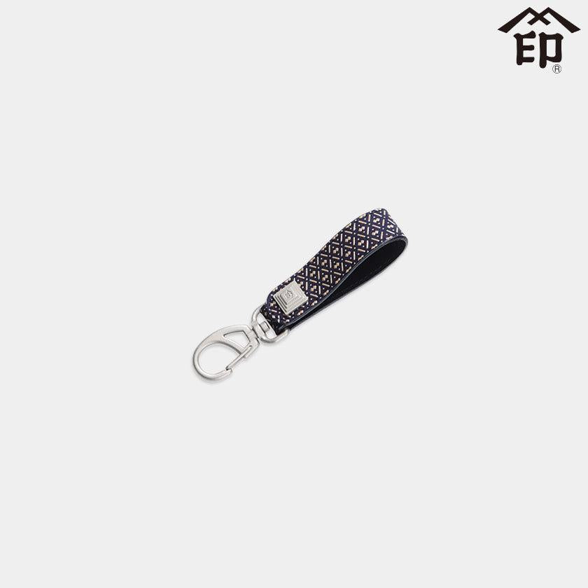 紺地に白漆で瓢箪柄を描いたキーホルダーは、ホック留め仕様で、ベルトやバッグなどにしっかり取り付け可能。
