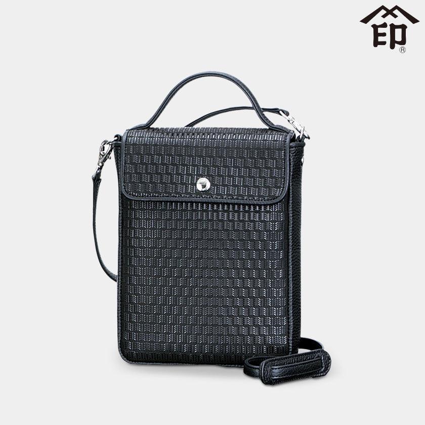 黒地に黒漆で描いたショルダーバッグは、肩紐が着脱可能なので、シーンに合わせて持ち方を変えられます。