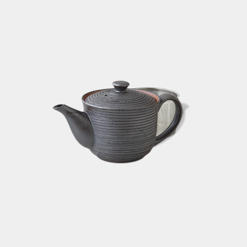 繊細な千段模様が施された黒色のポットです。