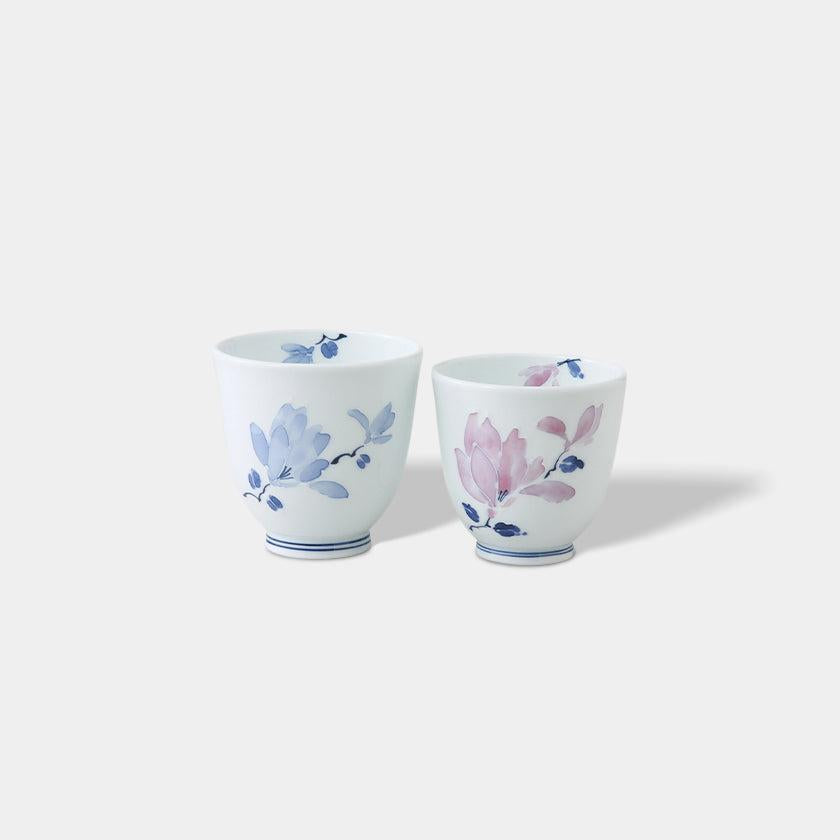 着物の柄を思わせる優雅な花模様が描かれた湯呑のセットです。