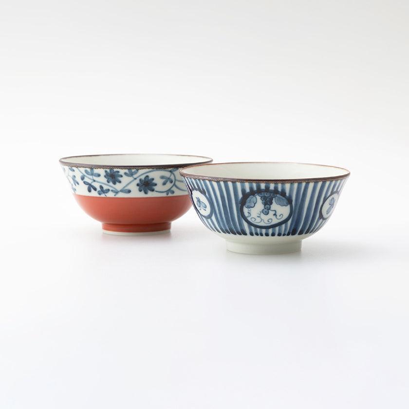 可憐な文様が印象的な、ペアの反鉢(そりばち)です。