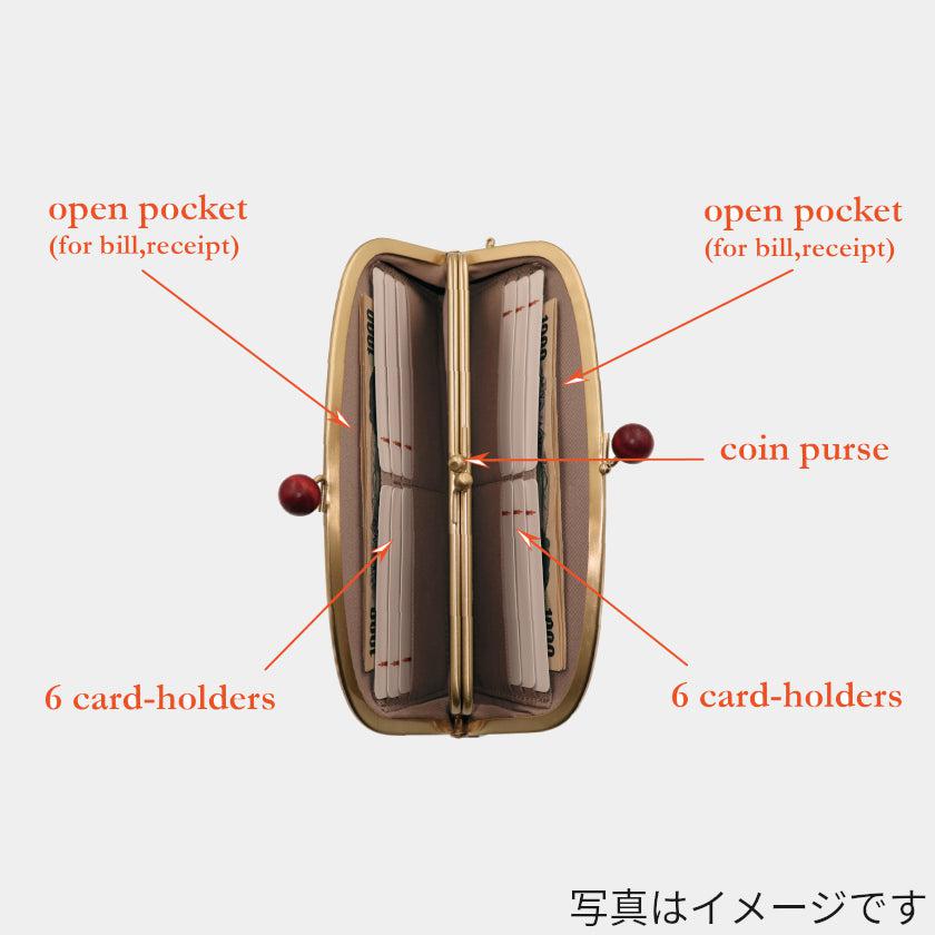 ポップな木玉がアクセントのがま口