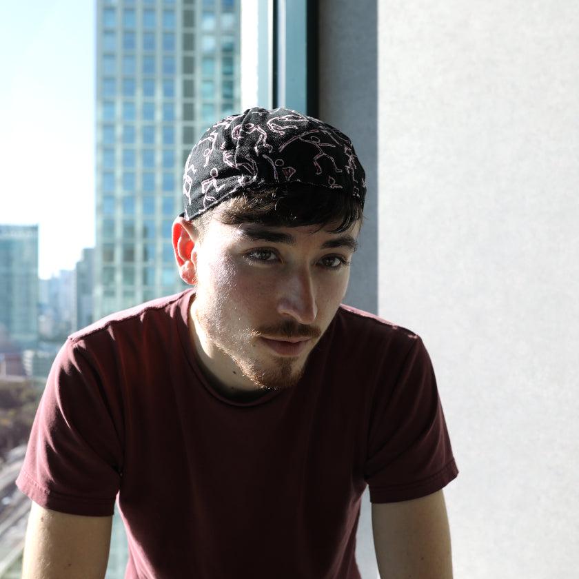 自転車のヘルメットの下にかぶるキャップに羽裏柄を施しました。