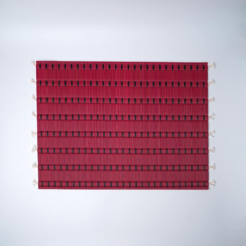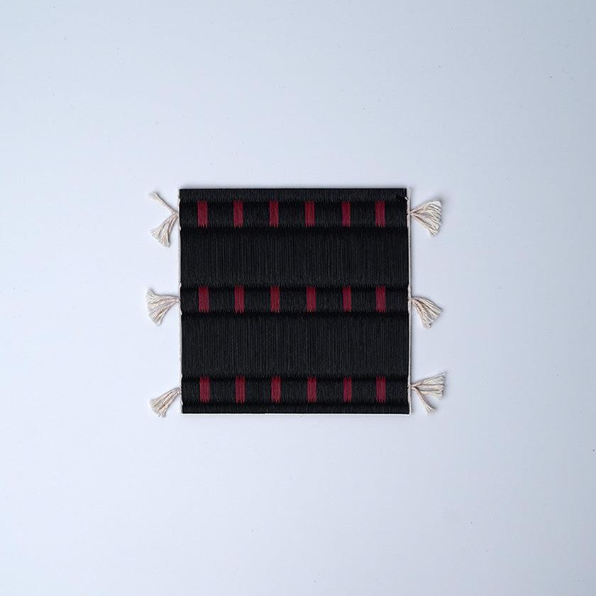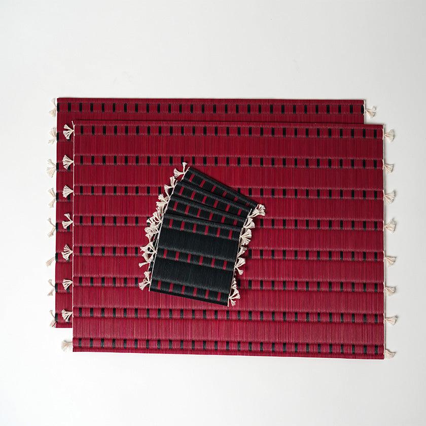 ブラックのコースターとレッドのランチョンマットのセット