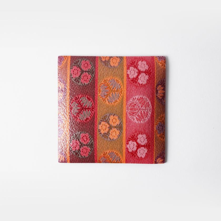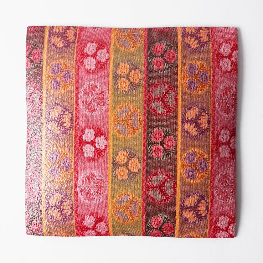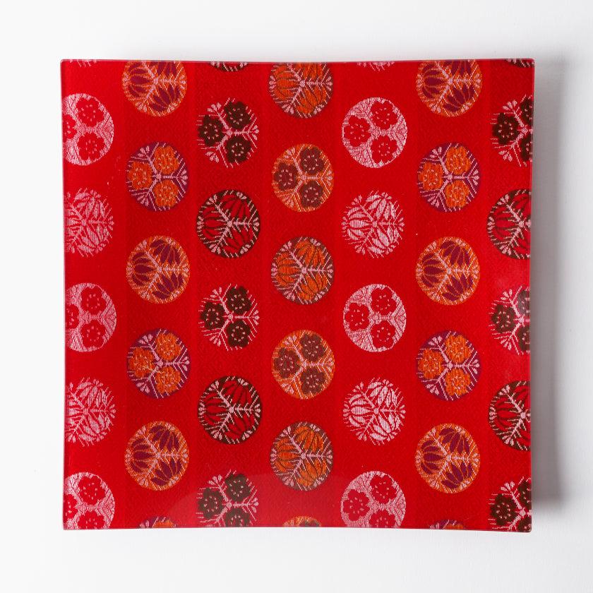美しい織物をガラスとEVA樹脂で挟み込み、裏面には滑り止めや飛散防止加工を施した機能性の高いお皿です。