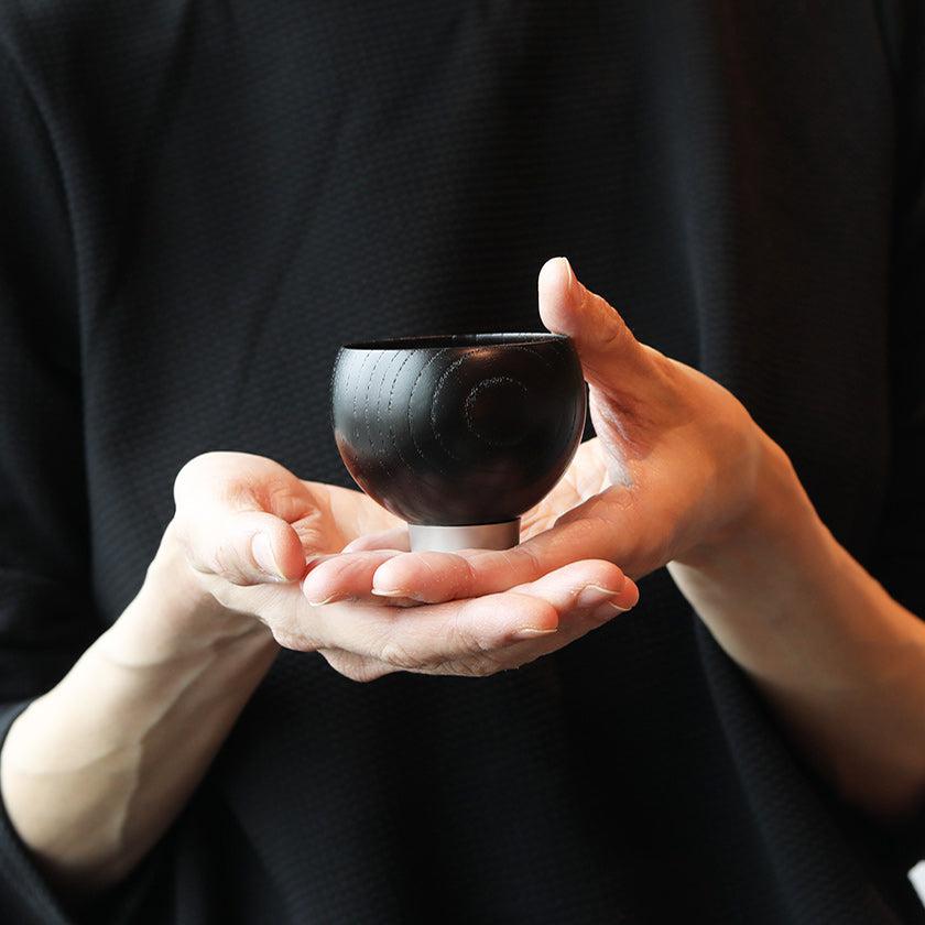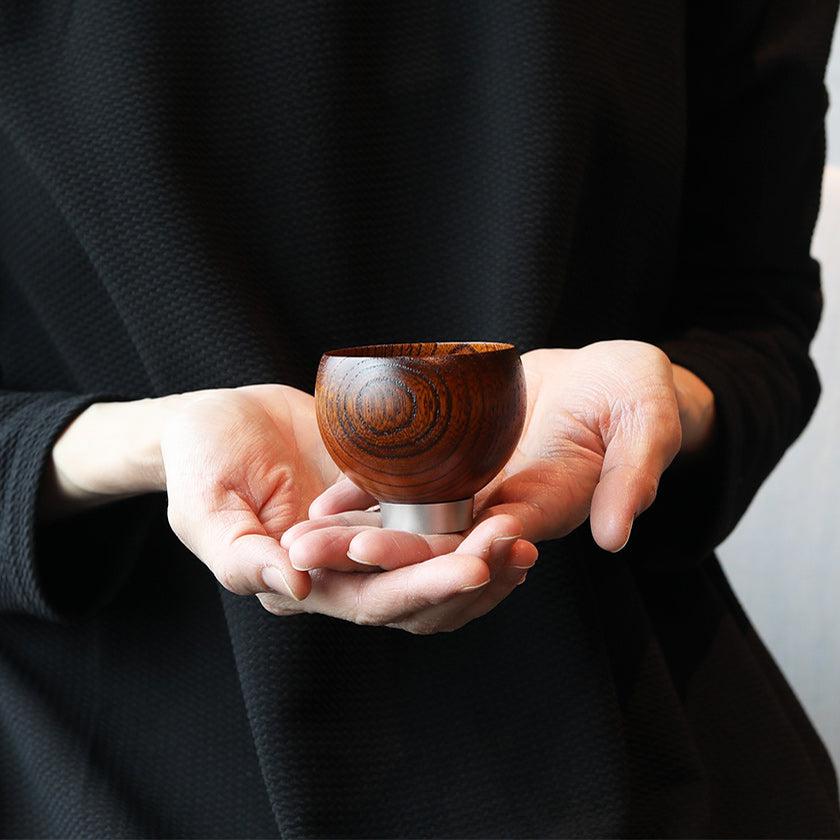 木材は温度や湿度の変化に敏感で、さらに漆塗りの仕上げには繊細な技術が求められます。一方、金属は環境に左右されず安定した形状を保ちますが、その加工にも高度な技術を要します。このように性質のまったく異なる素材の組み合わせを実現したアイテムがこのおちょこ。
