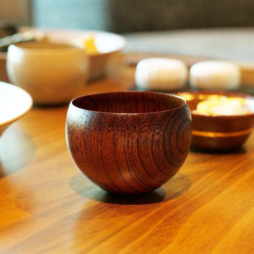 手のひらにすっぽりと収まる形状もさることながら、滑らかな漆塗りの質感が手にとても心地よく感じます。口に当たる部分は絶妙な薄さで、するするとお酒がすすむ作り。