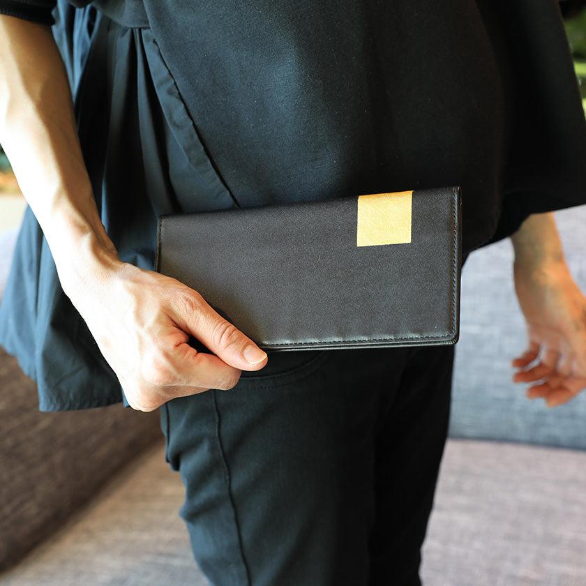 カード類がたっぷりはいる収納力と胸ポケットに入れても目立たない薄さを兼ね備えました。