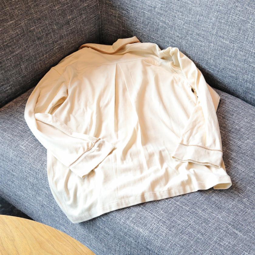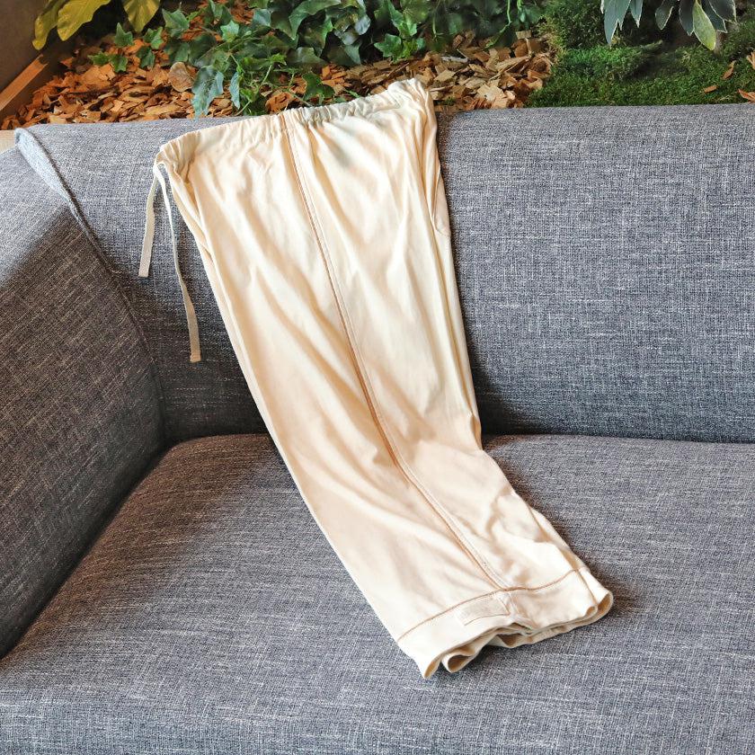 希少なオーガニックコットン「アルティメイトピマ®」を染色や漂白せずに使い、縫い代を出さずにフラットに仕上げました。