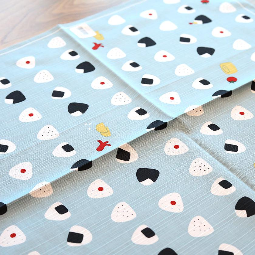 海苔、ごま、梅干しに天むす。日本の代表的なおにぎりがズラリと並んだ楽しい小風呂敷です。