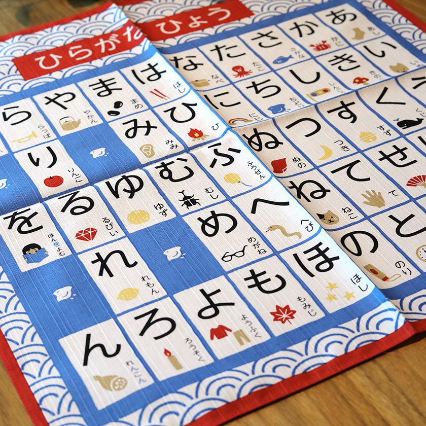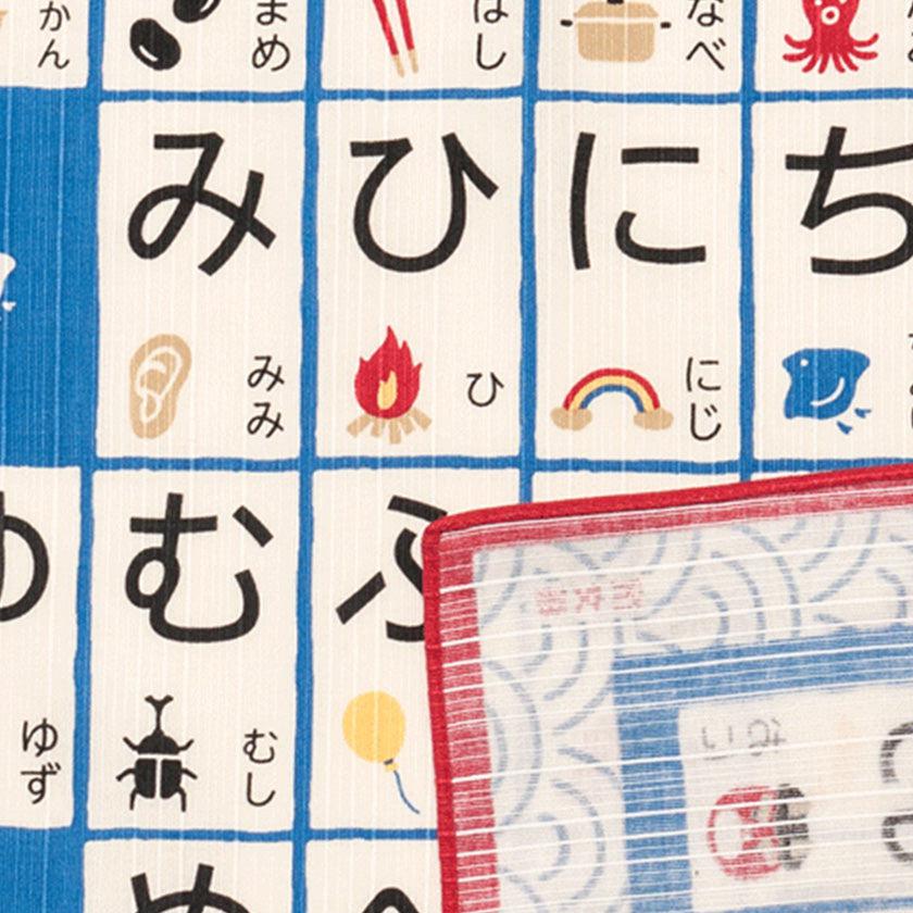 日本語の50音がひと目でわかるイラスト付きひらがな表の小風呂敷です。