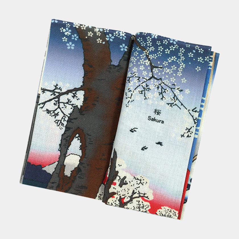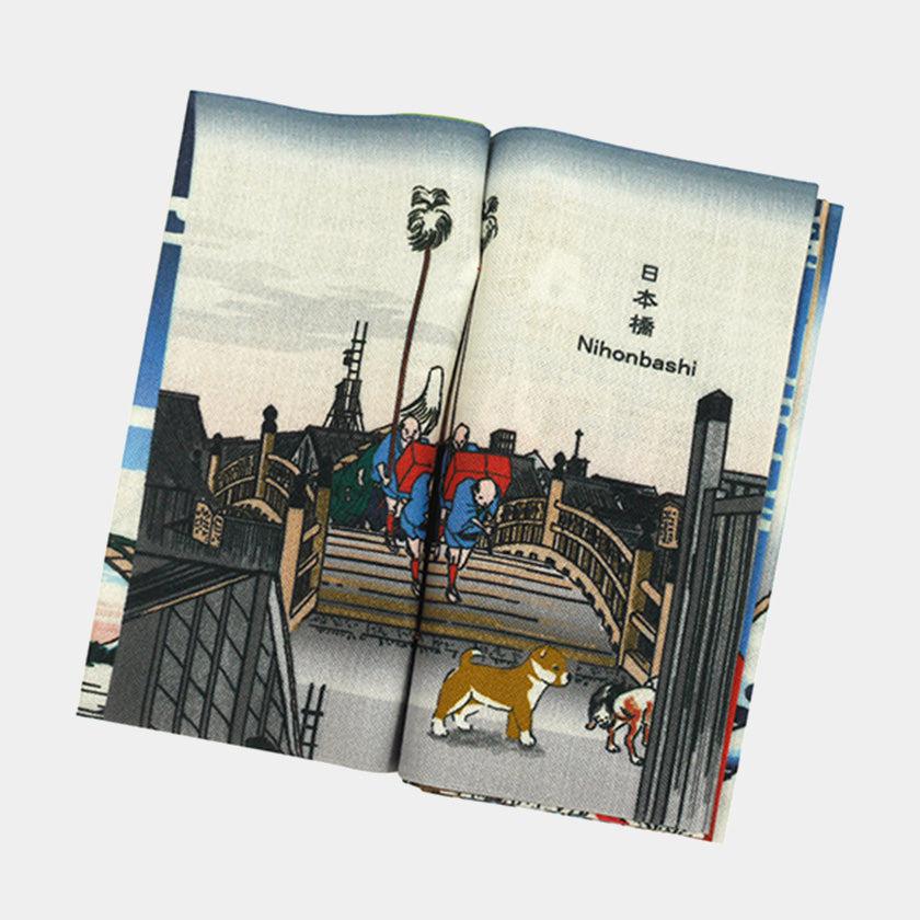 江戸時代の浮世絵師、葛飾北斎と歌川広重の代表作を型染めした横浜捺染のユニークなてぬぐい本です。