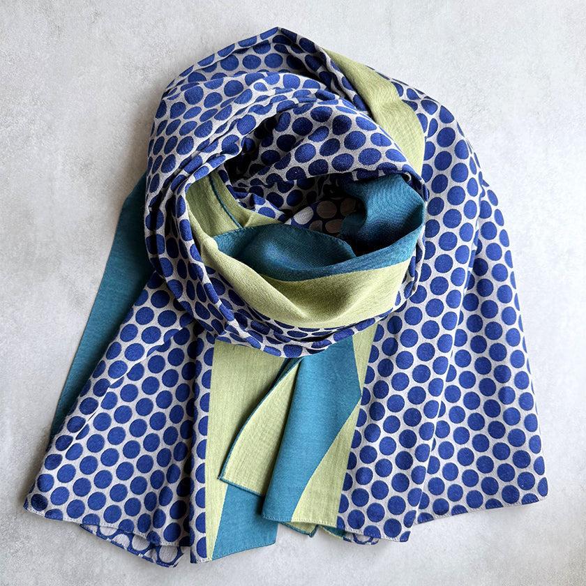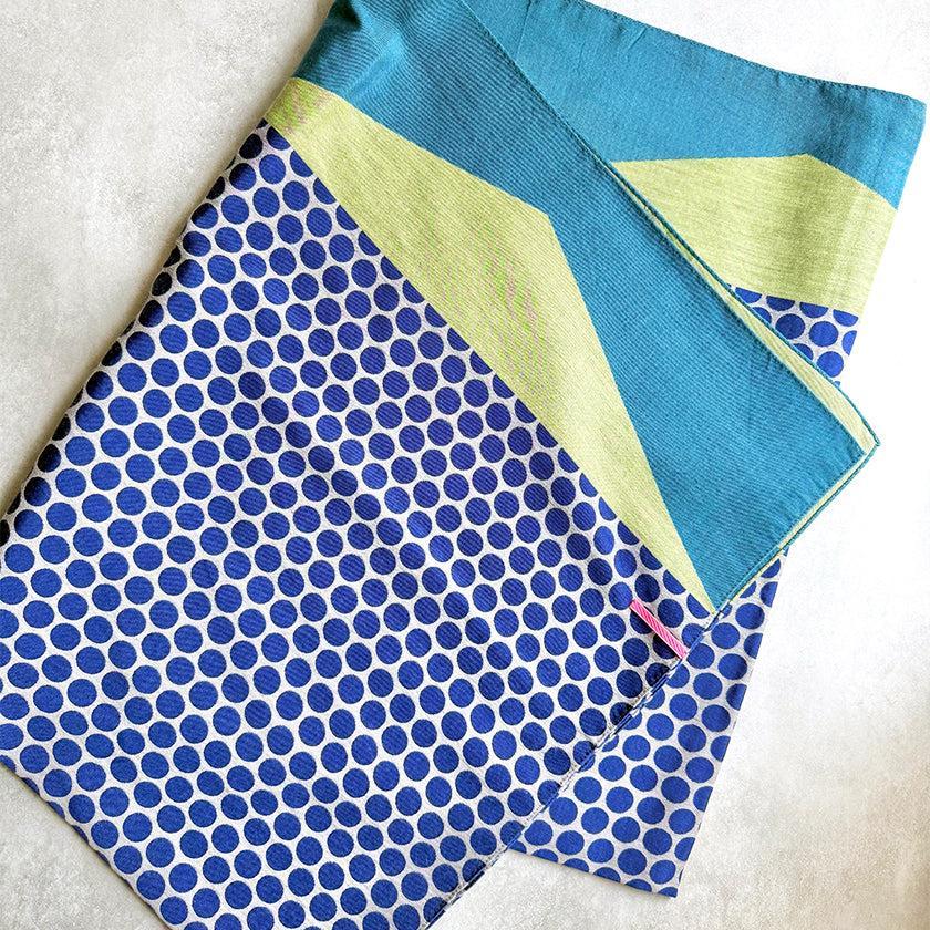 コットンとキュプラがミックスされた播州織のストール。上質なキュプラの光沢感と柔らかなコットンの肌触りがひとつになっていて、コットン100%よりもさらりとした質感が魅力です。サイズ・デザインが異なり、自分好みの1枚を見つける楽しさも。ご自身のファッションスタイルにあわせて、このストールでさまざまな表情をプラスしてみてくださいね。