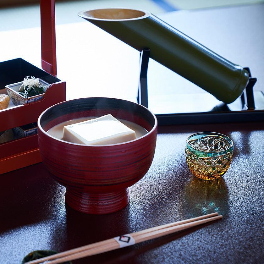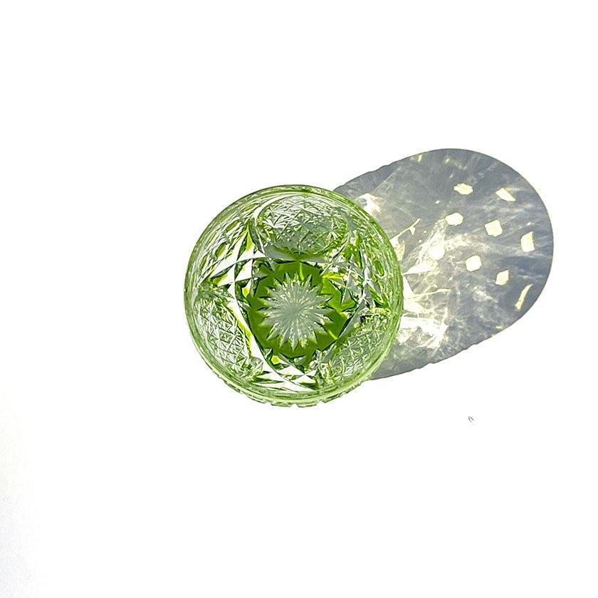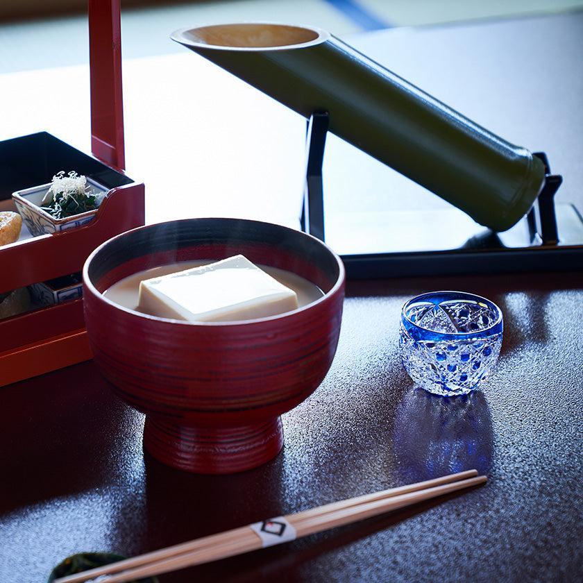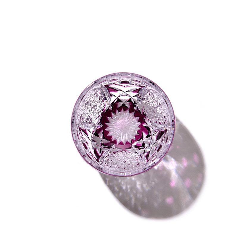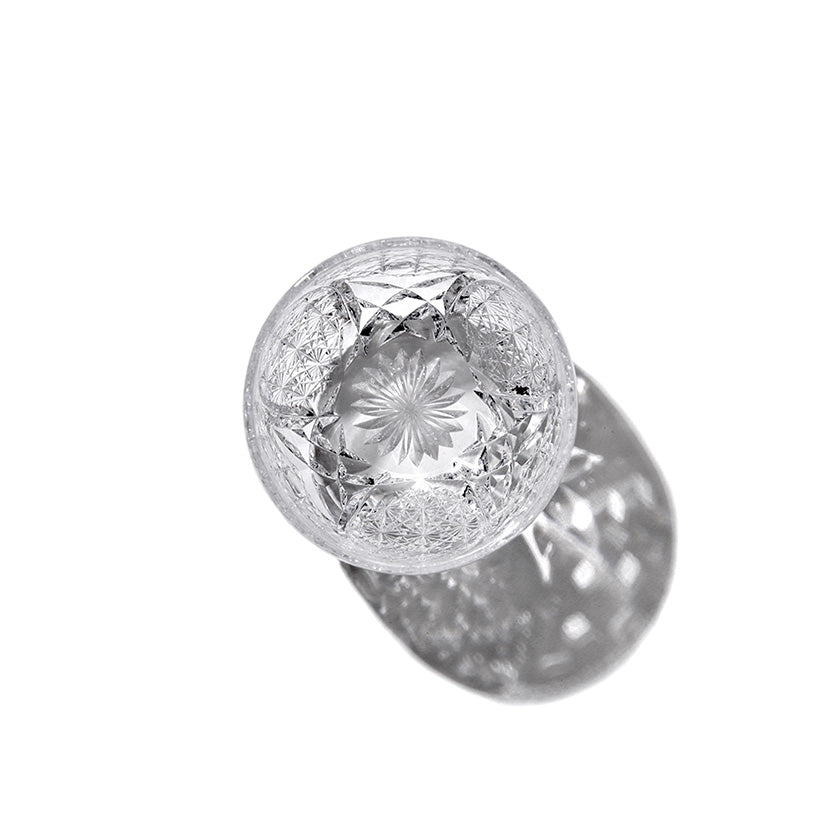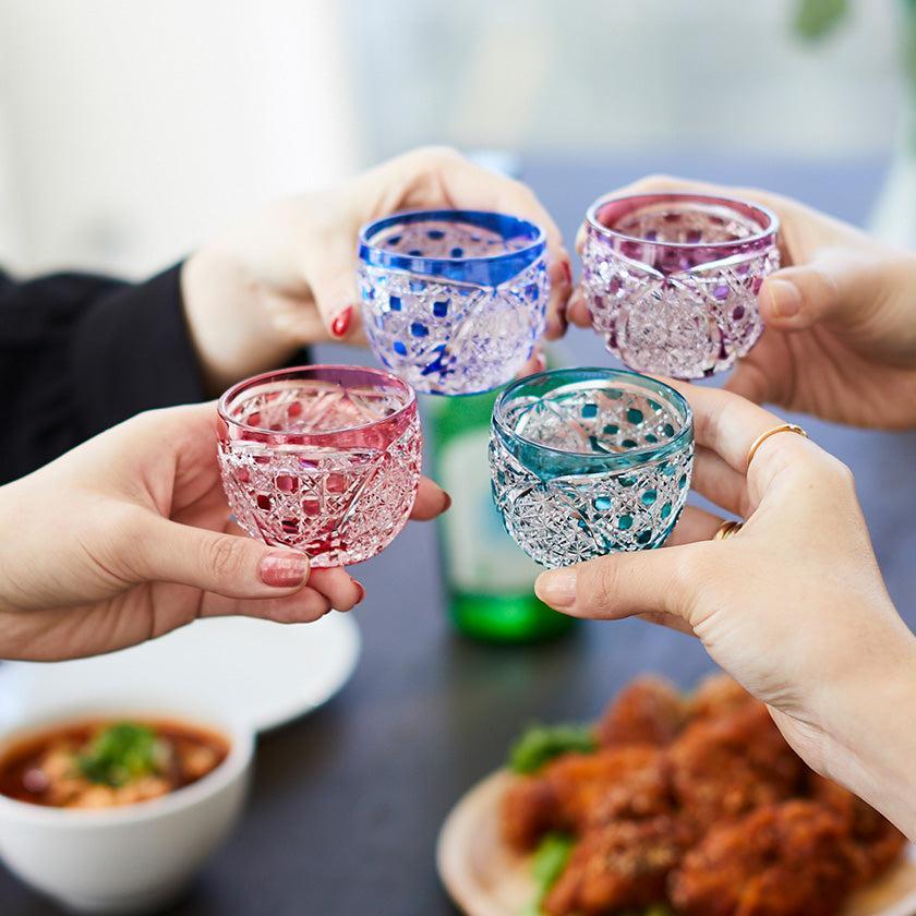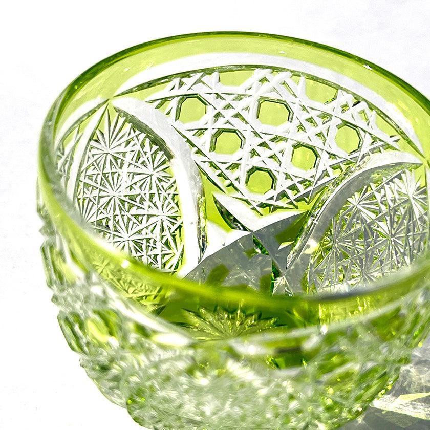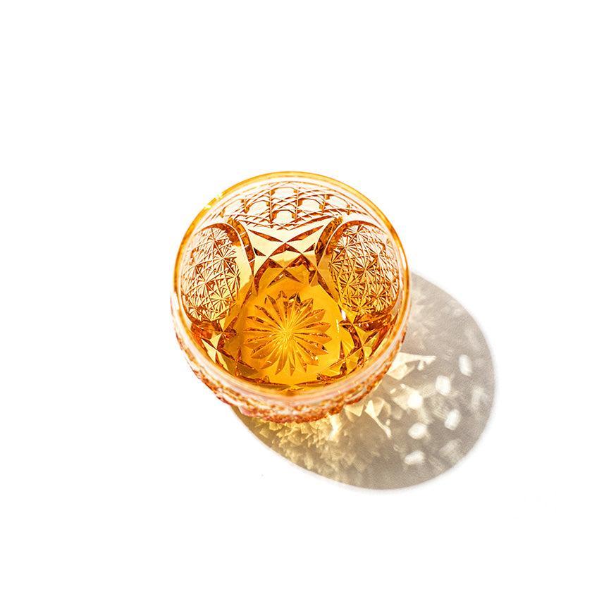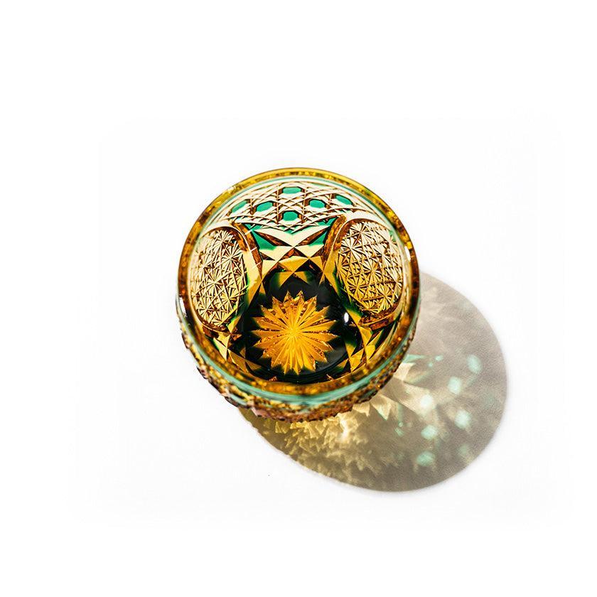籠の目を図案化し、古来より魔除けとされた「籠目紋」、 不老長寿を表す菊花が連なり咲き誇る様を表す「菊繋ぎ紋」。 二種類の紋様を交互に配した縁起の良い江戸切子です。