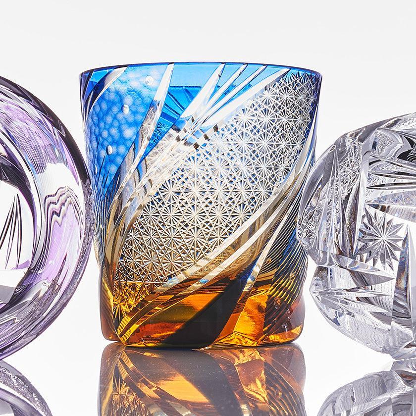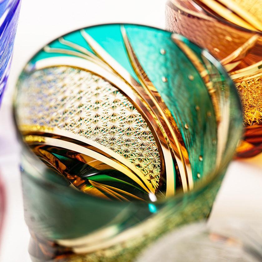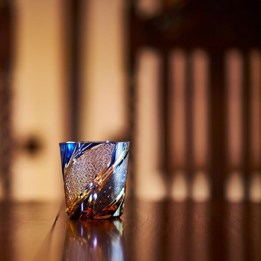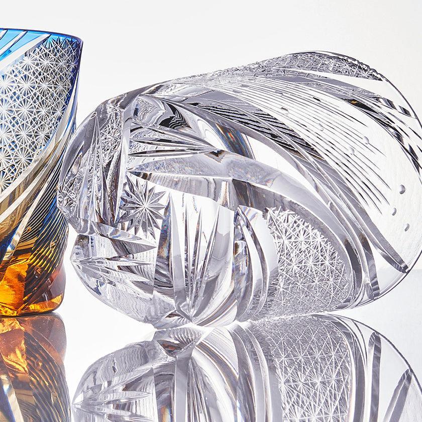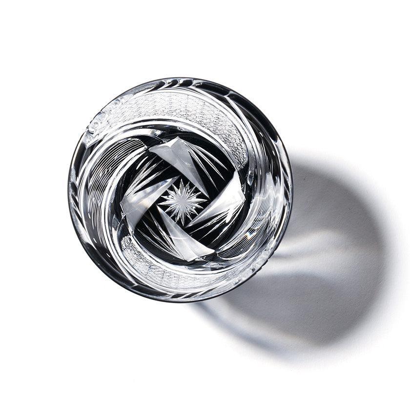 夜空に煌く流星群を表現しました。伝統紋様の「菊繋ぎ」を渦巻くように配した曲線美のカットにより更なる輝きを味わえる逸品です。