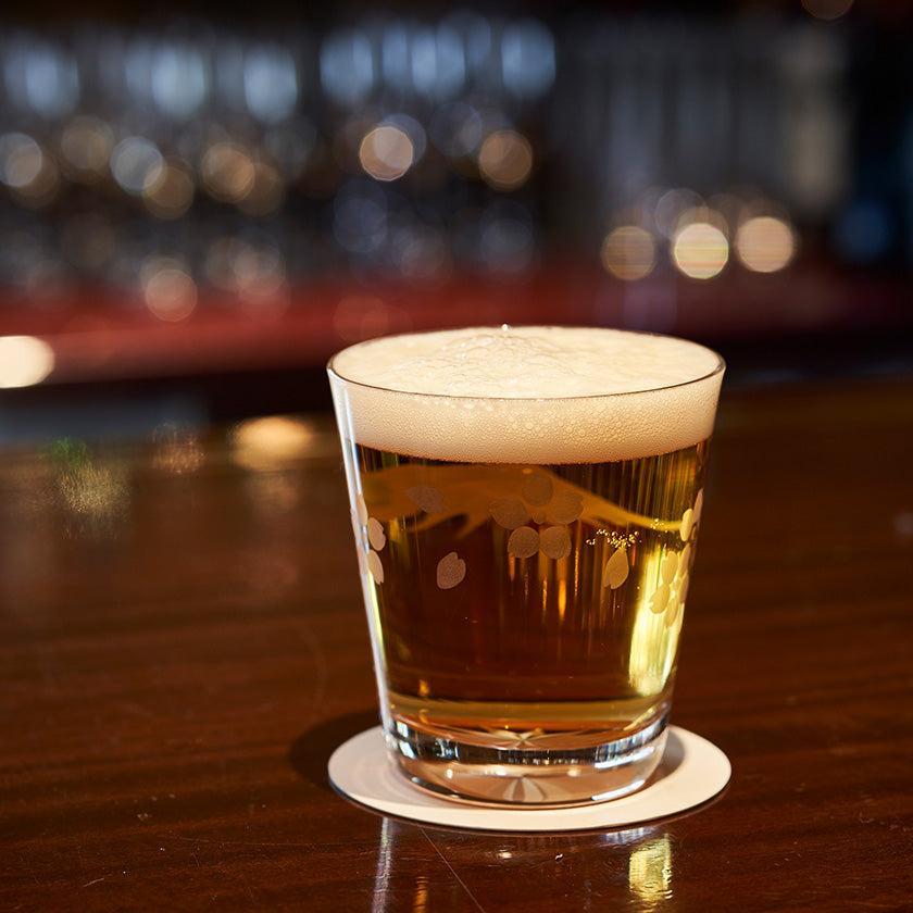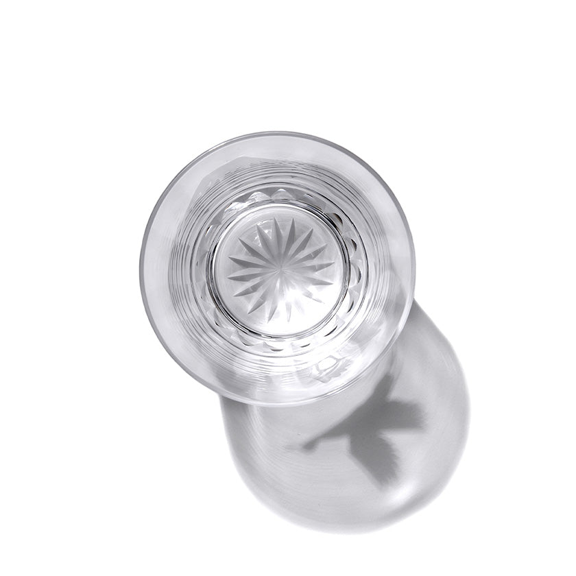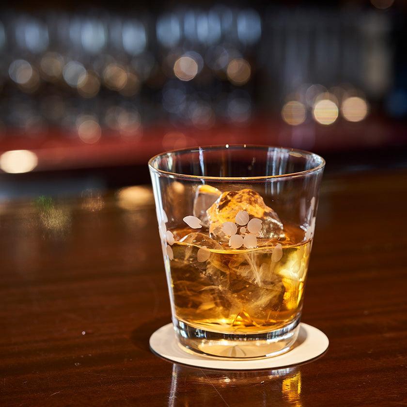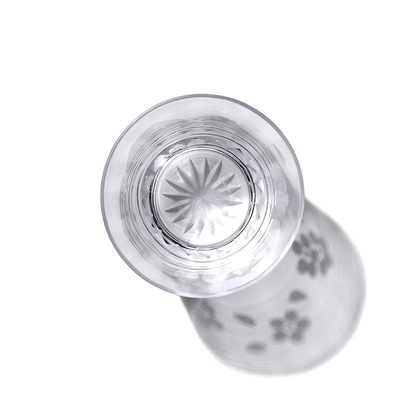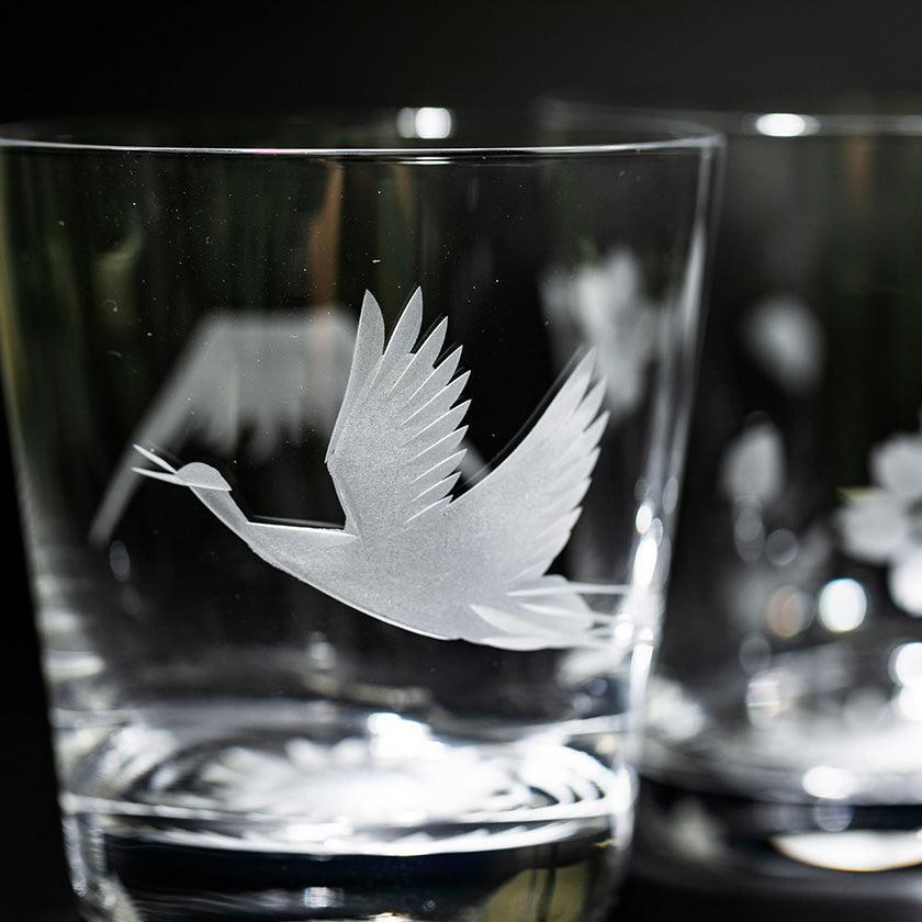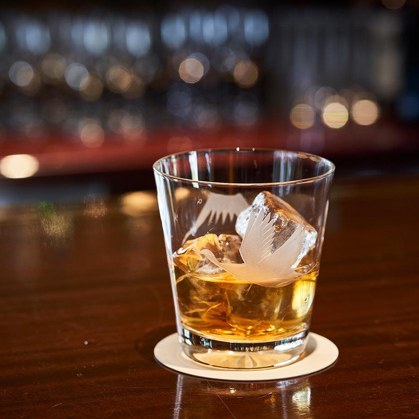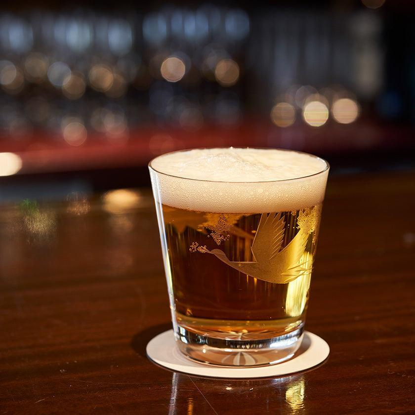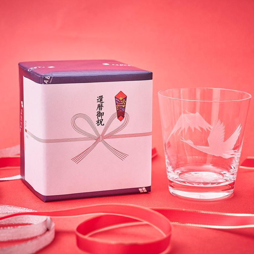 透明のガラスに花切子の技法で縁起の良い富士と鶴・桜をカットしました。日常の様々なシーンに溶け込み、「使いたくなる」シリーズです。