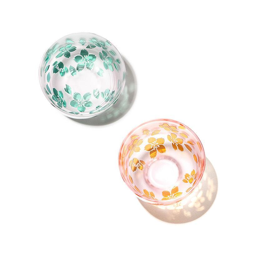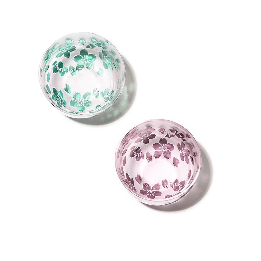 二層の色被せガラスを一つ一つ手吹きにて作り、その器に彫刻を手作業で施し、二色のコントラストで図柄を表現しています。ピンク色が華やかな桜のシリーズ。 優しい色味と使い易さを大切にした形の器は性別・年齢を問わずお楽しみいただけます。
